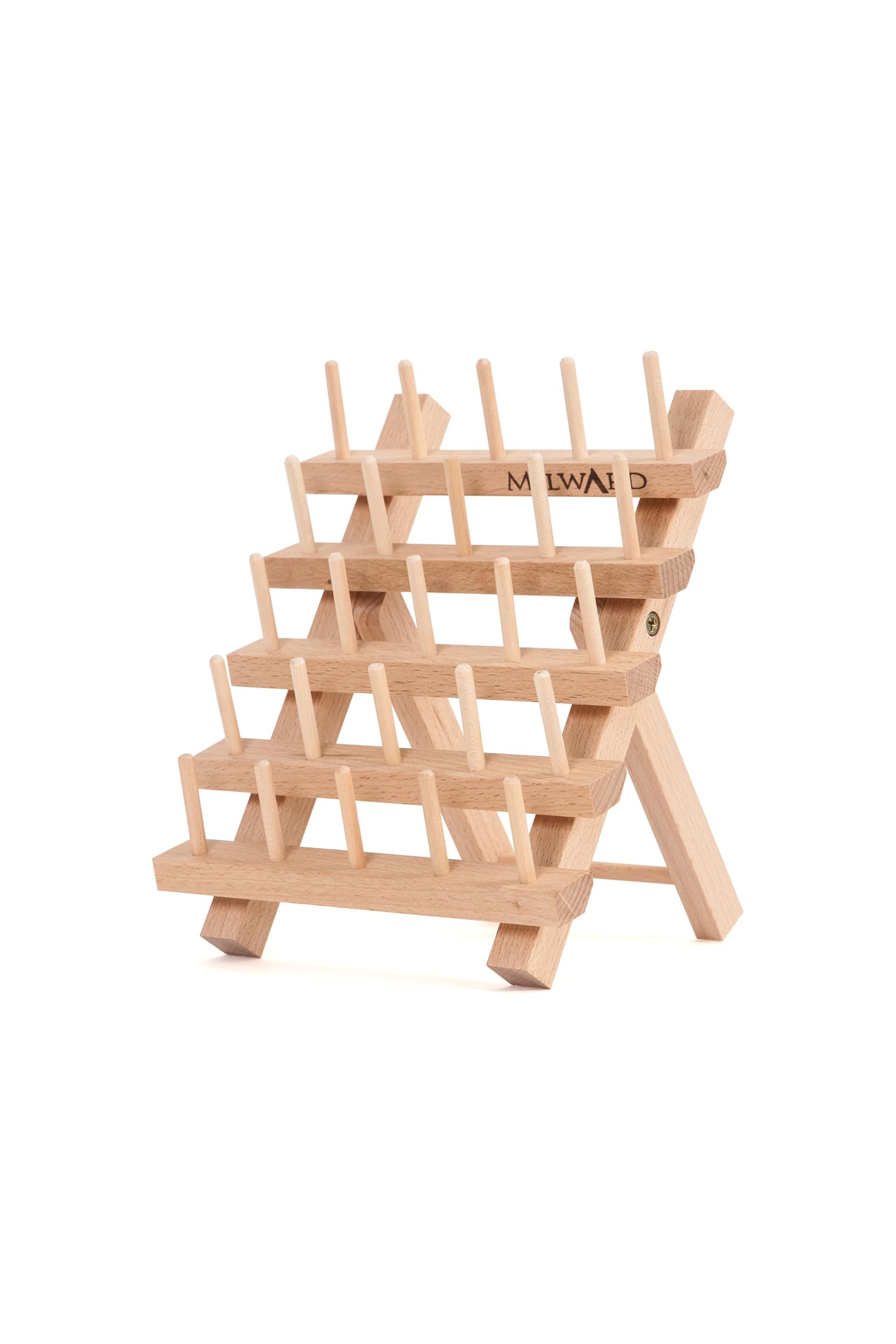 Organize your thread spools with elegance thanks to this wooden thread holder, both practical and stylish. Designed to hold up to 25 spools, it keeps your threads clearly visible, easily accessible, and perfectly organized in your sewing space.