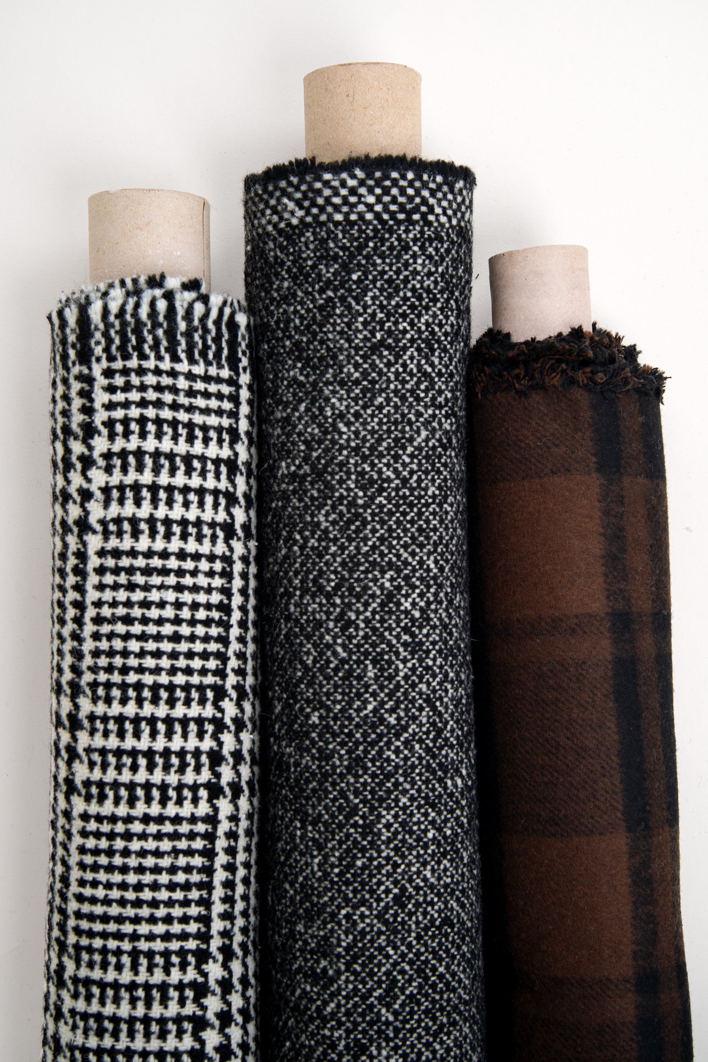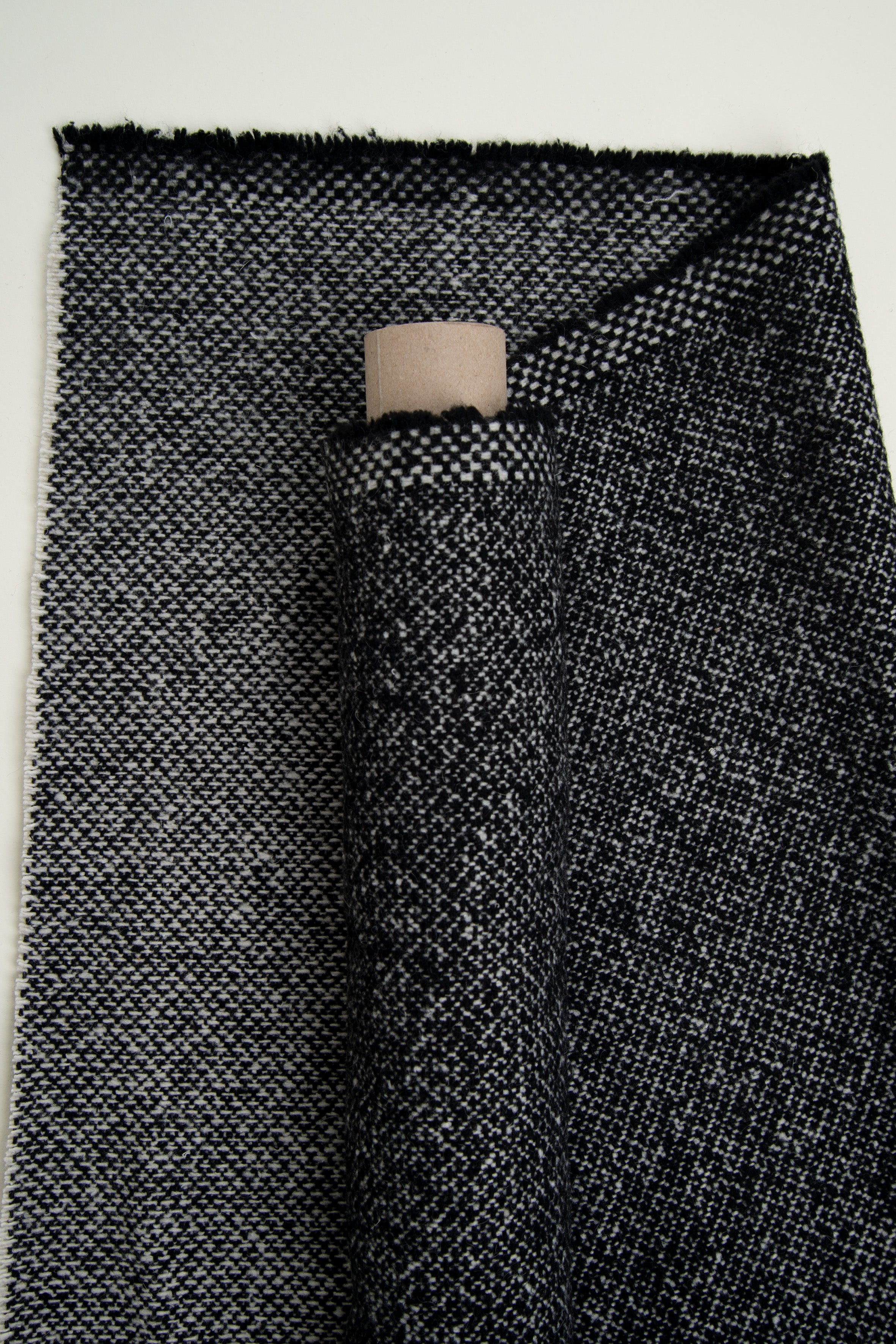Le lainage moucheté Black & Off White joue sur la subtilité d’un grain irrégulier, où se mêlent fils noirs et écrus. Ce tissage moucheté crée un effet vivant, à la fois moderne et artisanal.